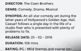 Similarly themed to many of the Coen brothers’ films, Hail, Caesar! will be most resonant with fans of O Brother, Where Art Thou? which likewise depicts a set time and associated mentality with all the indications of a watershed change just around the corner, alluding throughout to the politicisation of the industry and the impact of the infamous Hollywood blacklist.