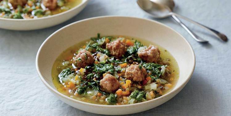 A meal in itself, this hearty concoction of aromatic vegetables, herbs, earthy lentils and mini pork meatballs will warm the soul.