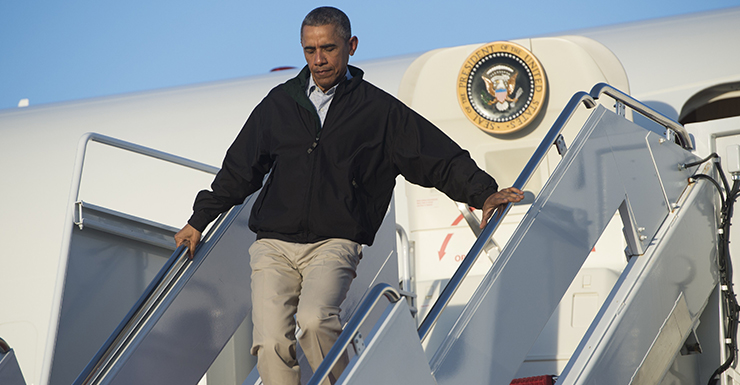 Mr Obama was returning from a golf weekend in Florida.