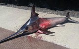 The rope attached to the spear lodged in its body prevented the swordfish from fleeing.
