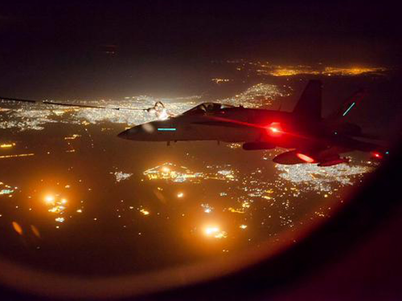 In a statement Defence said two RAAF F/A-18 Hornets, an air-to-air refuelling aircraft and an Early Warning and Control aircraft combined during the mission but no weapons were released.