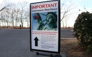Tourists who came to Battery Park in lower Manhattan hoping to catch a ferry to the Statue of Liberty in New York...
