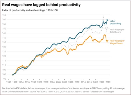 It’s an economic mantra that we can only have sustainable real wages growth from productivity growth – but our wages growth hasn’t been keeping up with the productivity growth we have managed.