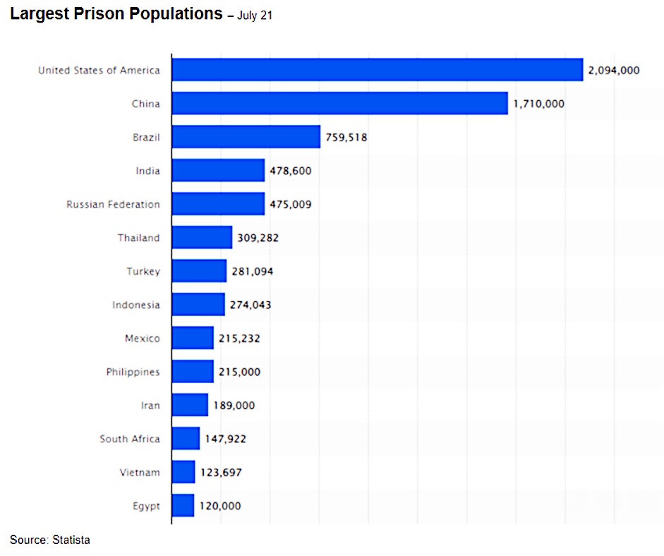 - Mass incarceration: America’s two million convicts is one of the largest prison populations in the world. It’s also one of the largest in history. Nearly a quarter of Americans have a criminal record.