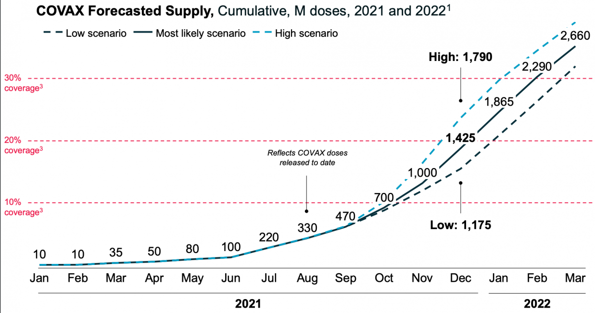 COVAX has secured commitments to deliver 1.4 billion doses by the end of 2021, but this will be well short of its original goal of two billion doses.