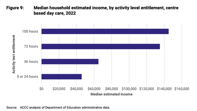 For example, the ACCC found households with the lowest entitlements to subsided hours are more likely to be lower income and, conversely, end up paying for more services out of pocket.