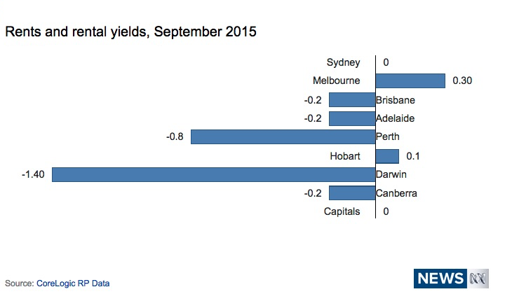 Only two out of eight capitals (Melbourne and Hobart) posted modest rental increases in September, while Sydney was flat and the other five recorded falling rents.