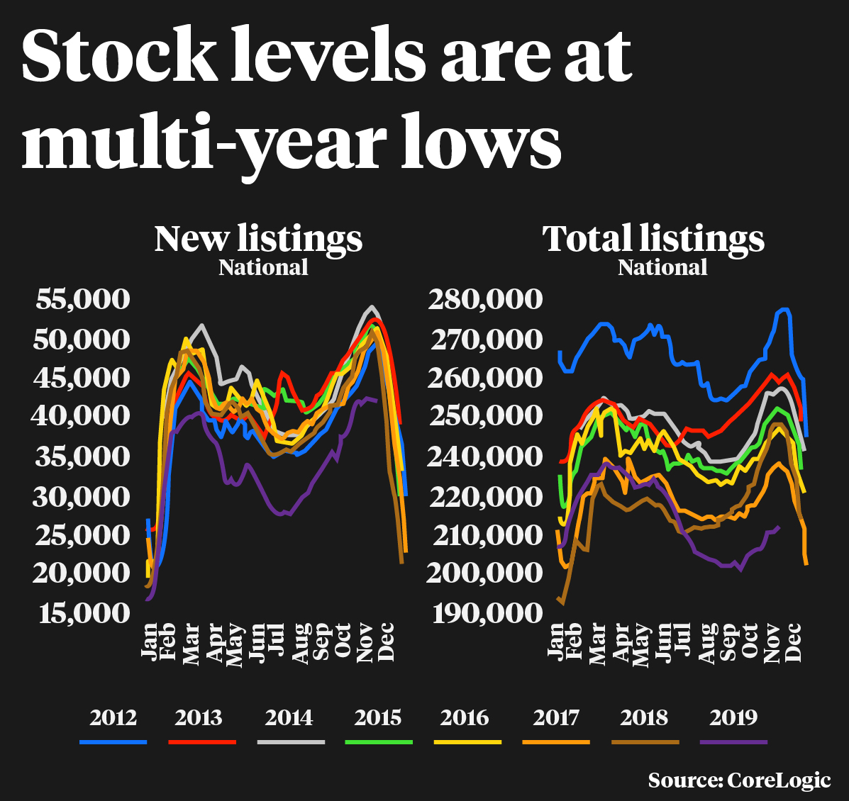 According to CoreLogic, the number of properties available for sale in November was at its lowest level for this time of year since 2009.