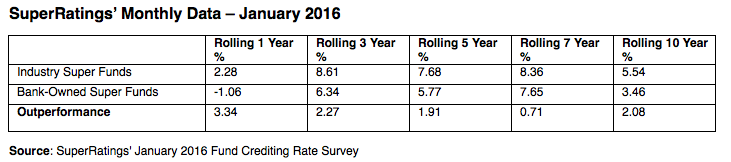 Meanwhile, data from research firm SuperRatings shows a difference of more than 2 per cent over 10 years, in comparison to bank-owned funds.