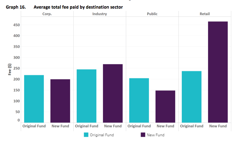 For those switching to or in the not-for-profit sector, which includes industry, public sector and corporate funds funds, the aggregate increase in fees was $13 million.