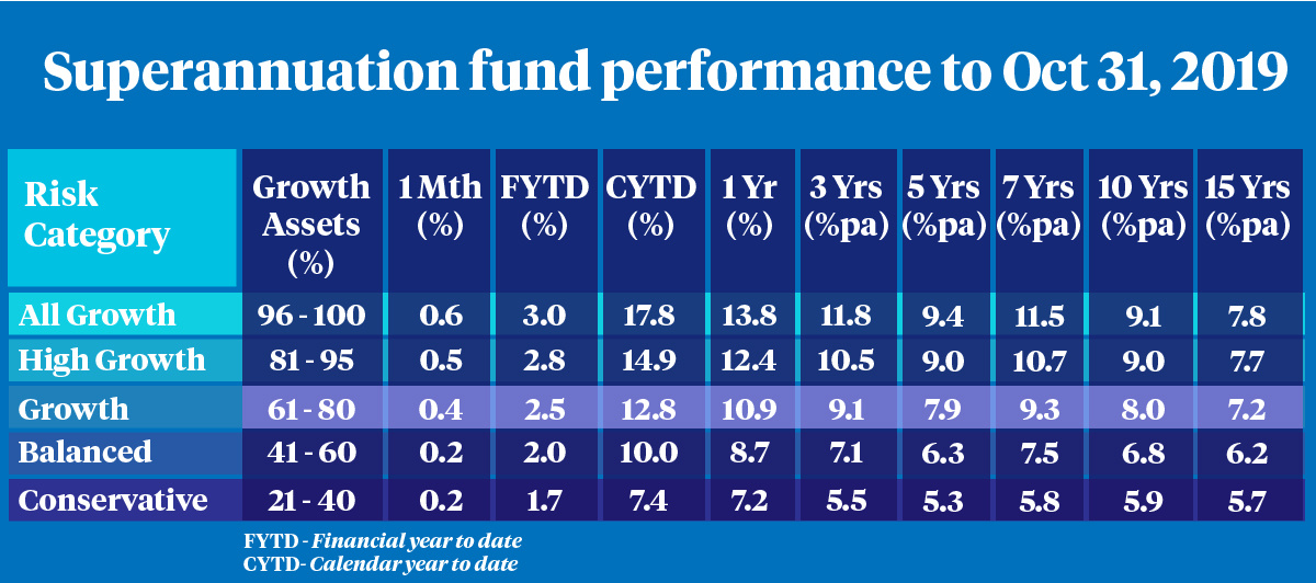 Most Australians saw their super funds return 14 per cent over the year so far, with hopes high for a double-digit end to 2019.