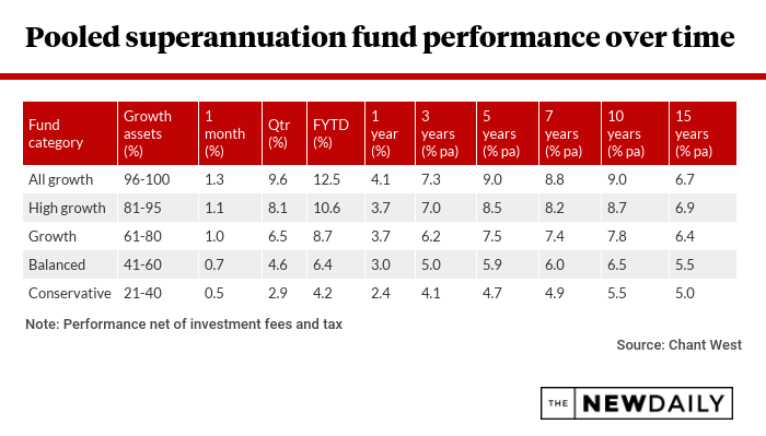 The top performing fund, Suncorp Growth, returned a massive 9.6 per cent.