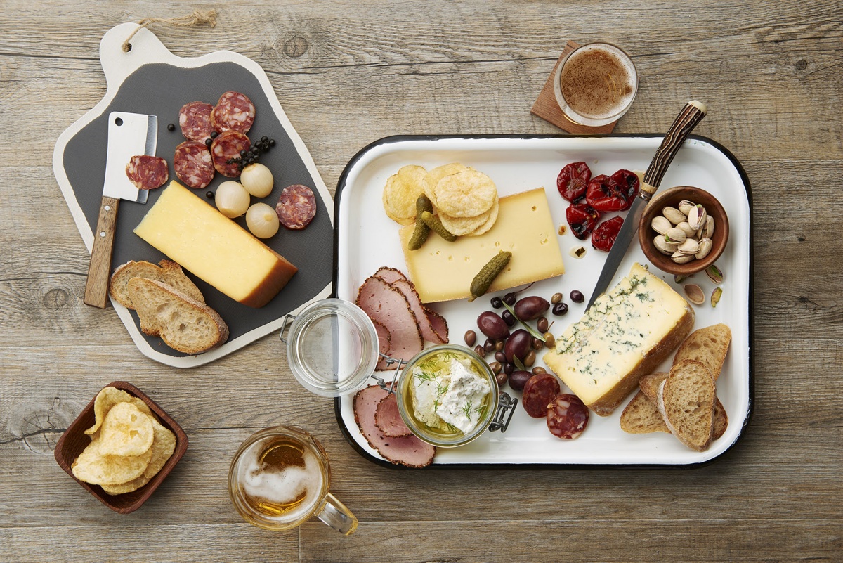 Dairy Australia recommends three cheeses to a platter: one soft cheese, such as camembert or brie, one hard cheese, like cheddar, and one strong cheese.