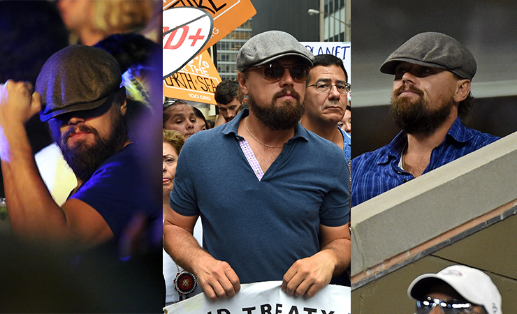 While we welcome the change, we just hope Leo continues to wear pageboy caps really far down on his face because it is both bizarre and hilarious. Seriously, how does the man see where he’s going?