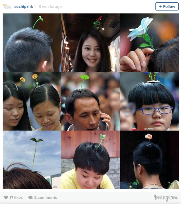 Yes, you read that correctly. In Beijing, #sproutcore is everywhere. Whether real sprouts, plastic sprouts or felt sprouts, people are pinning the plant to their heads.