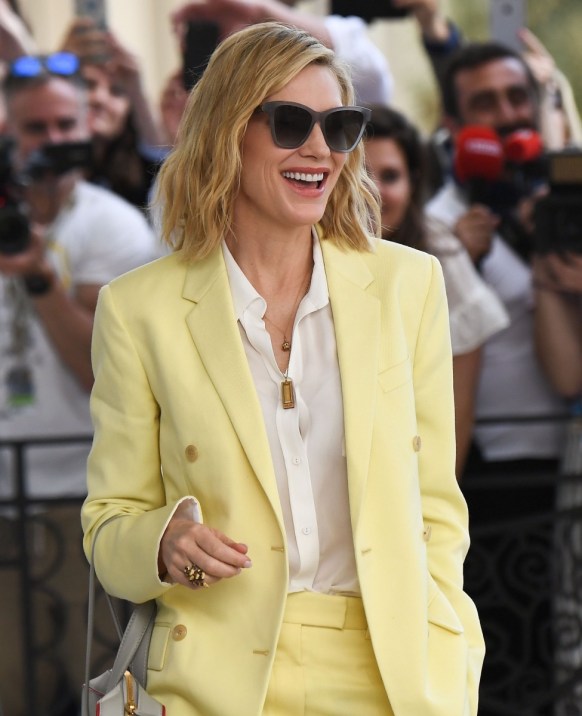 The theme of Blanchett’s French riviera wardrobe appears to be pastel pantsuits – she made her debut as the president of the jury on Monday wearing a striking pale yellow pantsuit by Calvin Klein.