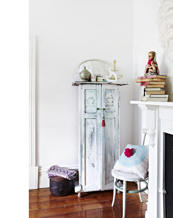 It’s all about the details! Here, an old wardrobe has been revamped with some pressed metal tin, then painted mint and complimented with accessories. Visit your local paint store, and investigate your colour options to revamp an old piece into a masterpiece!