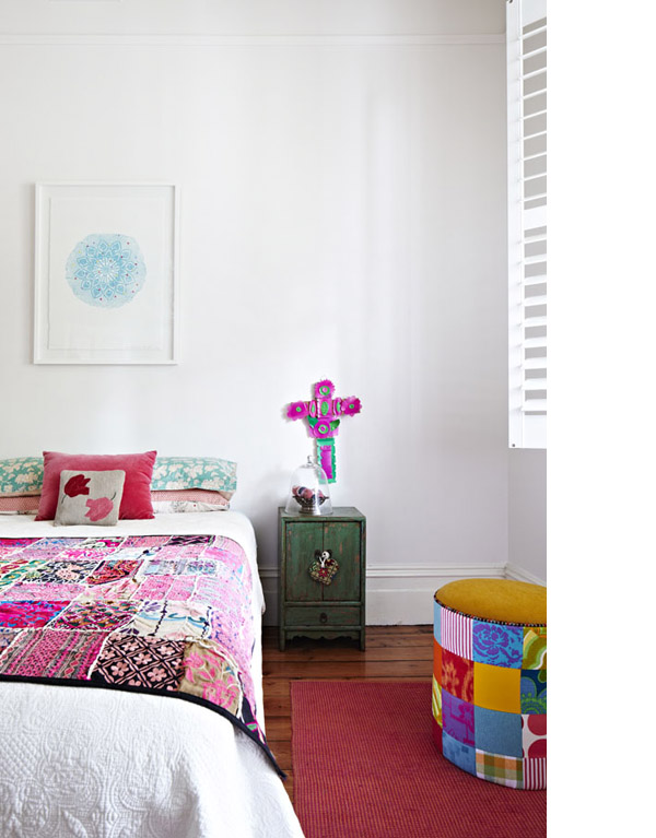 A bedroom should be your room to escape and relax. Pick the colours that make your heart sing, and invest in some good basic plain bed linen, but regularly change the pillowcases or bed throw to create a different look each time. Try Amitie for its impressive range of vibrant fabrics and have a go at making your own. Kip and Co is another good option for bright bedding.
