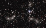 This image reveals three already large clusters of galaxies coming together to form a mega-cluster.