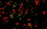 Photo: University of Queensland The NLRP3 inflammasome (green) is expressed by immune cells (red) in the brains of people with Parkinson's disease.