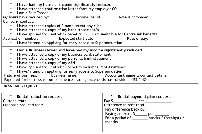 On its financial hardship application, agents Ray White Ascot Vale, asks tenants to answer if they intended to apply for early access to super.