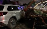 The Tecoma resident was driving out of a shopping centre carpark in Belgrave when a tree fell onto the vehicle shortly after 6:00pm.