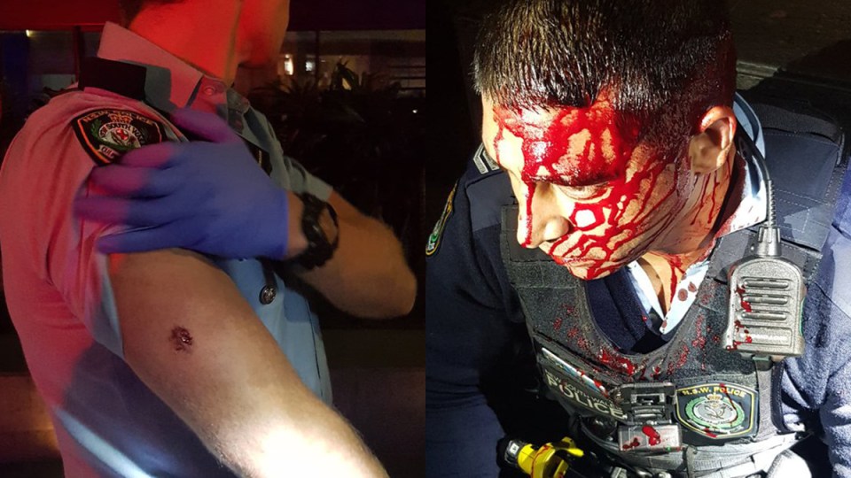 The injured officers were also taken to St Vincent’s Hospital, where a 40-year-old male senior constable was treated for a laceration to the left side of his head and a cut to his left shoulder.