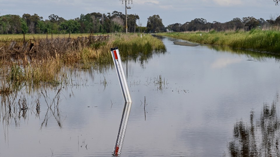 South-east of Swan Hill, levees have breached at Benjeroop and Murrabit West, affecting farmland there and north and west of Kerang.