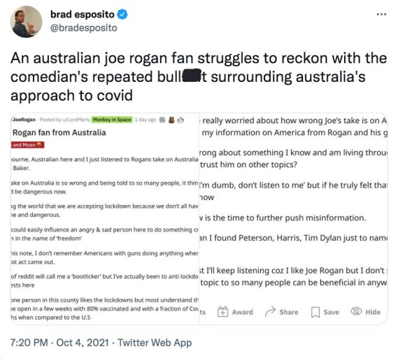 In a September 29 episode, Mr Rogan called Australia a “police state”.