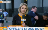 The Today Show reporter, Aislin Kriukelis, was interrupted by the crazed man while he was being arrested. She was updating the 7:30am bulletin on the unrelated story of the suspension of two Queensland police officers.