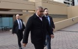 He exited the building followed by a plain-clothed police officer and went to his solicitor’s office around the corner.