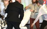 Their appearance was met with loud applause by some but the protesters were swiftly thrown out by security staff.