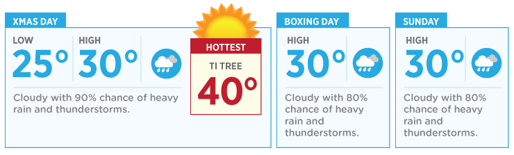 There will be at least an 80 per cent chance of rain through the festive period, with a 90 per cent chance on Christmas Day.