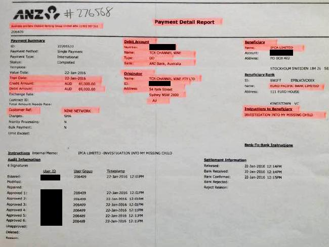 Late on Thursday, documents emerged purportedly showing a $69,000 payment from Nine to the child abduction agency at the centre of the scandal. The documents were allegedly presented to the Beirut court.