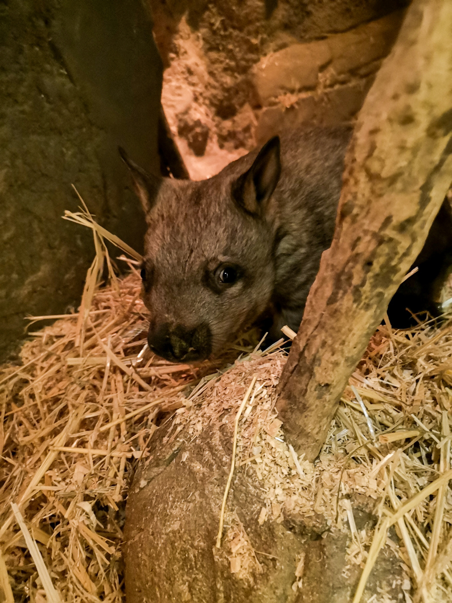A typical wombat joey will emerge from the pouch at around seven months, but Wanyi was a late bloomer.
