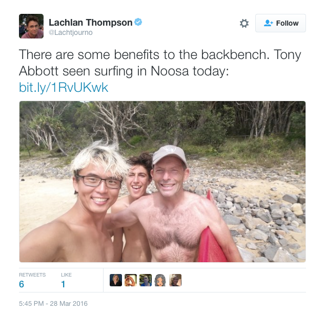 Former Australian prime minister Tony Abbott has clearly found plenty of ways to fill his newfound spare time, causing a stir over the Easter weekend when he hit the waves in Noosa.