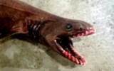 Its scientific name Chlamydoselachus anguineus, which literally means ‘snake-like frilly shark’, may be no coincidence. Scientists have suggested that it may hover in the water like a viper and use its rear fins to strike forward at its prey with its razor-sharp ‘fangs’.
