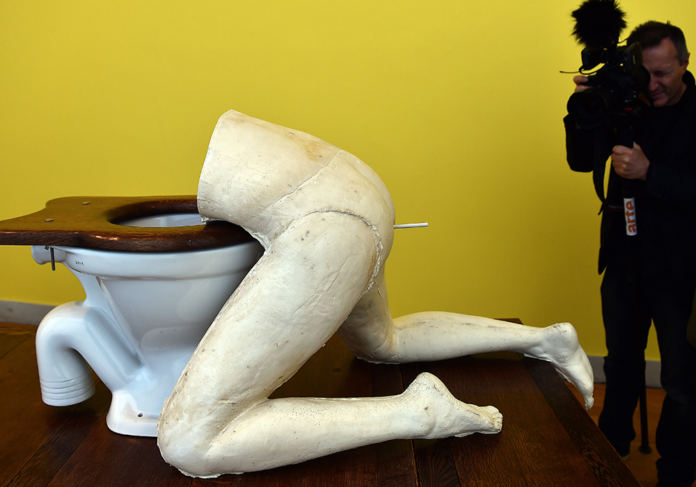 A piece by British artist Sarah Lucas on display at the he 56th International Art Exhibition in Venice.