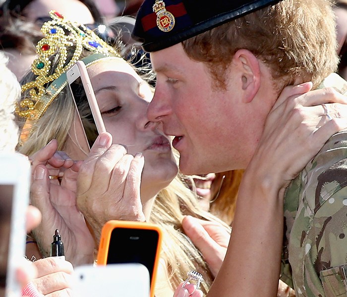 A Sydney fan plants a sneaky goodbye kiss on Prince Harry before as he prepares to leave the country after a secondment with the Australian Army.