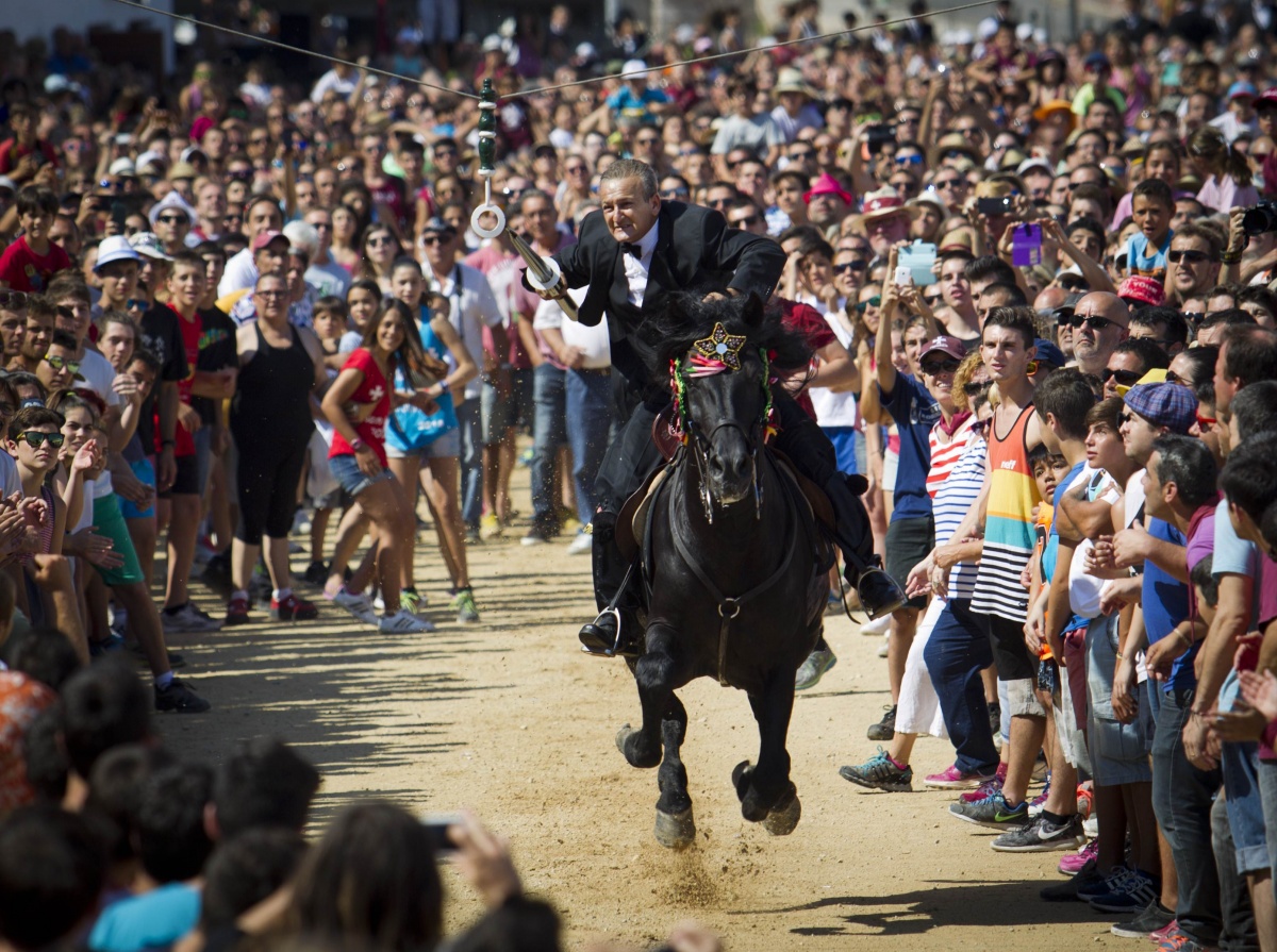 A race horse gallops through the town of Ciutadella in Spain to honour their patron saint.