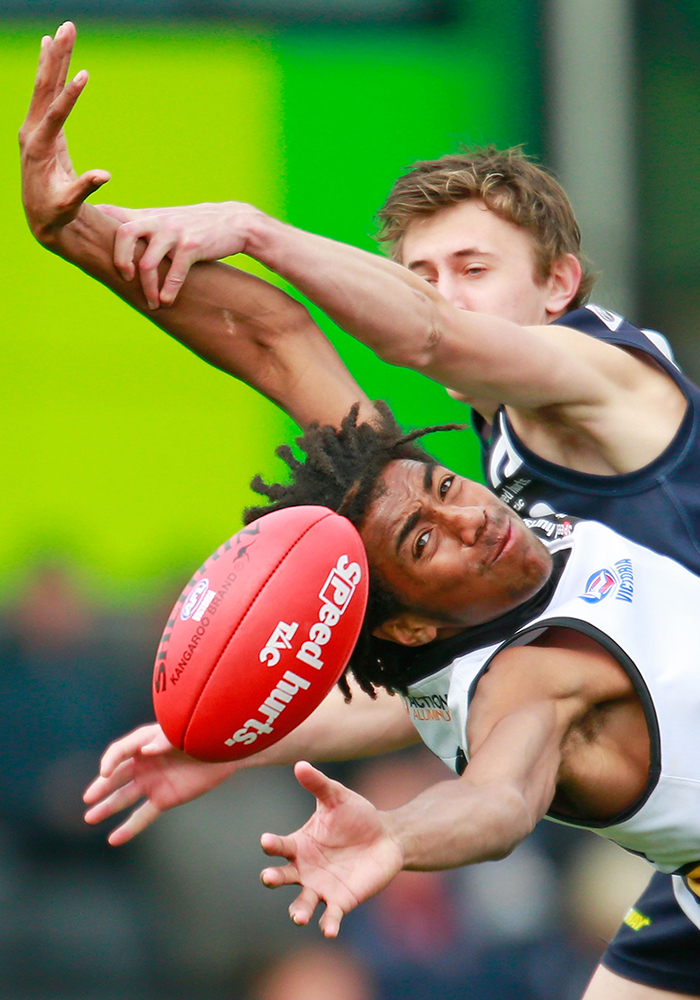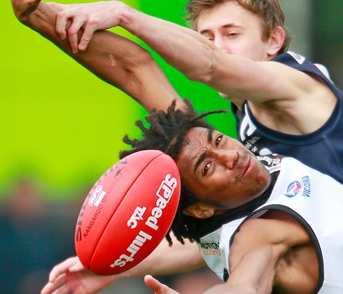 A Murray Bushrangers player makes a grab for the ball during a TAC Cup round 10 match.