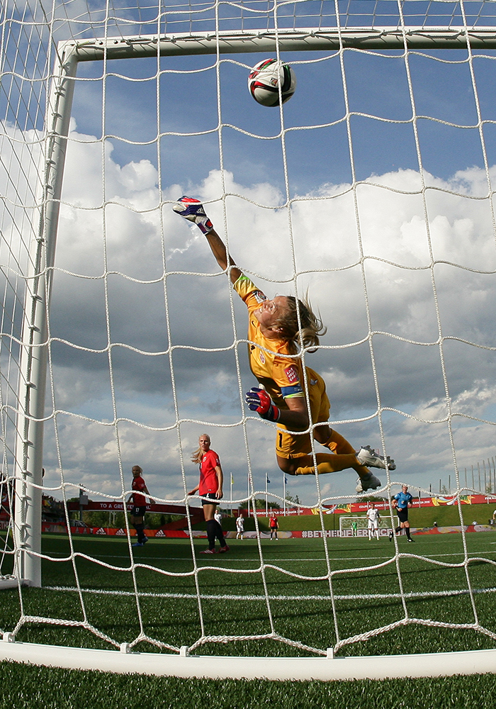 Norway's goalkeeper can't quite stop England's second goal during their Women's World Cup match.