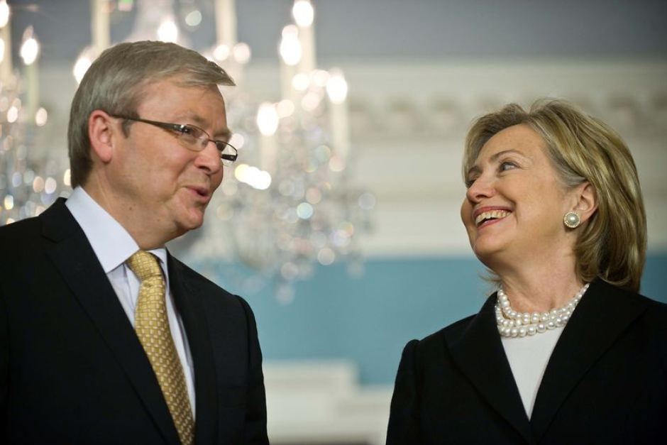 The reports cite newly released US State Department emails involving Mr Rudd, Mrs Clinton, both of their aides and then US ambassador to Australia Jefferey Bleich.