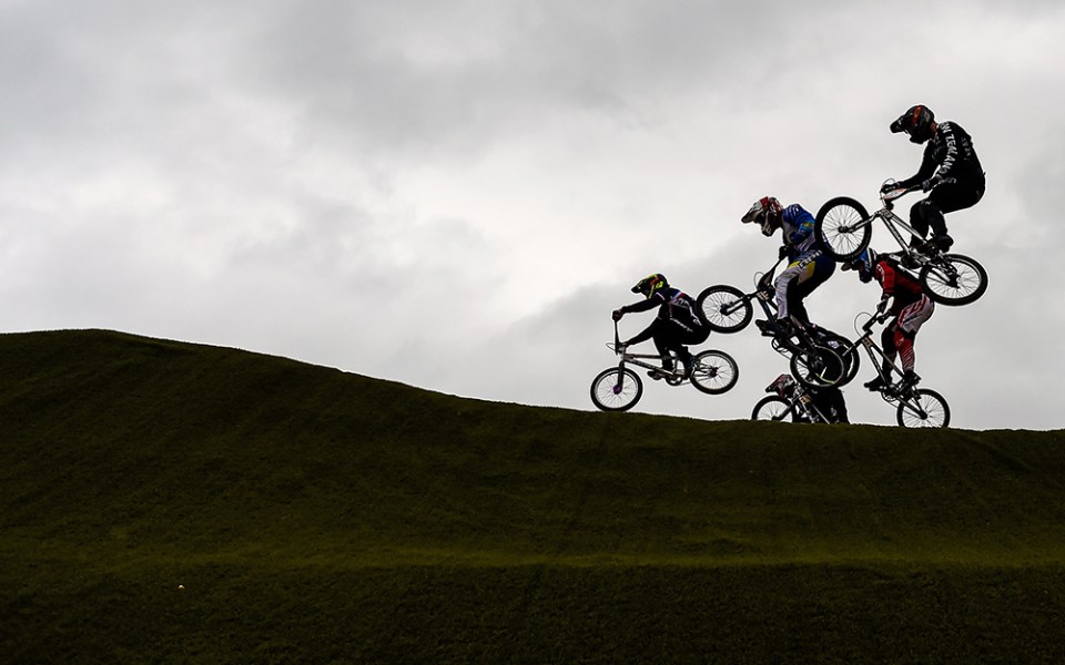 Competitors take part in the International BMX Cycling Challenge in Rio de Janeiro.