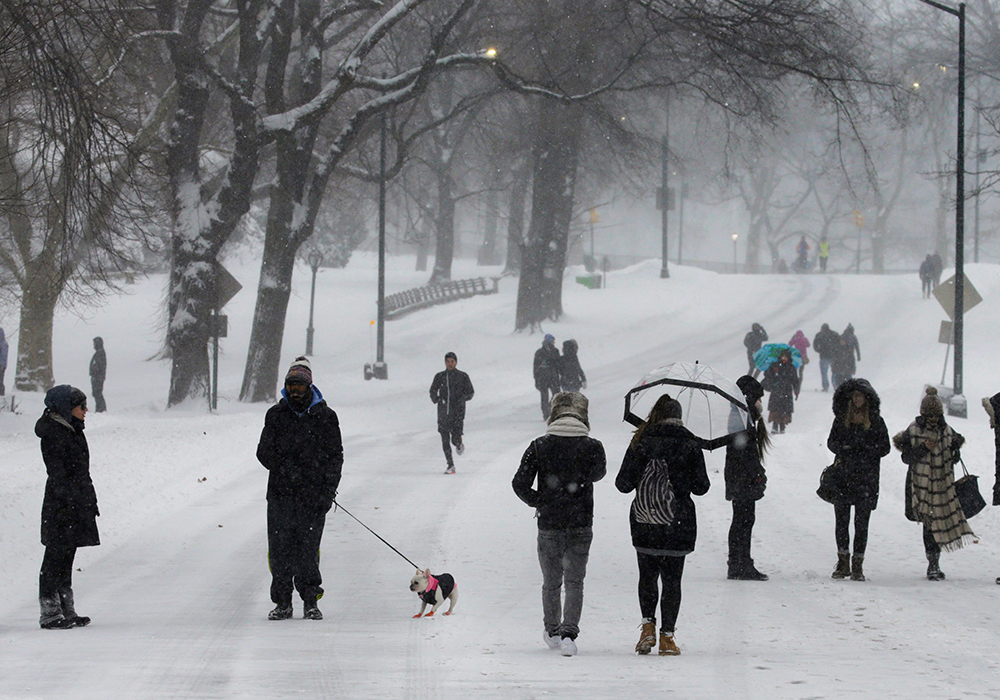 News World In pictures: ‘Snowzilla’ causes chaos in USA 10:24pm, Jan 24, 2016 In pictures: ‘Snowzilla’ causes chaos in USA The New Daily @TheNewDailyAU Share Twitter Facebook Reddit Pinterest Email Images: AP/Getty The first snow falls throughout the early morning as a brazen New Yorker walks across the Brooklyn Bridge before the historic East Coast Blizzard. A New York City Police car drives past snow-covered cars on the Lower East Side of Manhattan. A young boy runs up 42nd Street in the Friendship Heights neighbourhood during a major blizzard in Washington, DC. New Yorkers walk through Times Square as all cars except emergency vehicles are banned from driving on the road. A man pulls a child on a sled in Brooklyn with the Manhattan Bridge in the background during a large winter storm. People walk in Central Park during the first major winter storm in New York. A woman walks along a snow-covered street in the East Falls section of Philadelphia. A man shovels the front steps to his home in northeast Washington. A Citi Bike station is seen covered in snow in downtown Brooklyn. The Arlington National Cemetery is covered by the blizzard in Arlington County, Virginia.