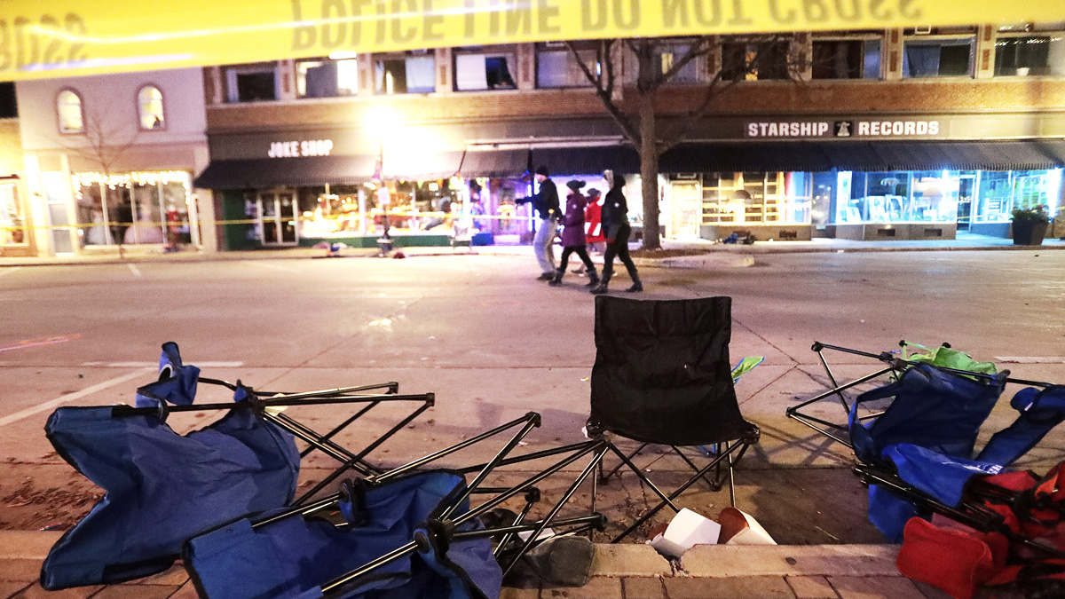 Police confirmed officers had fired shots towards the car as it drove towards the crowd after crashing through street barriers in Waukesha, about 30 kilometres west of Milwaukee.