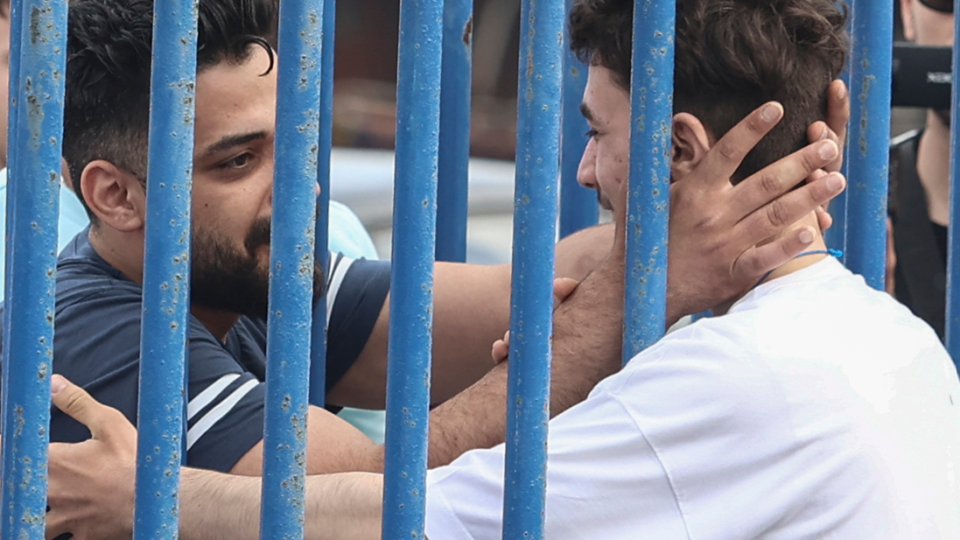 They wept and hugged through metal barricades, erected by Greek police around a warehouse in Kalamata, where survivors had been sleeping for the past two days.