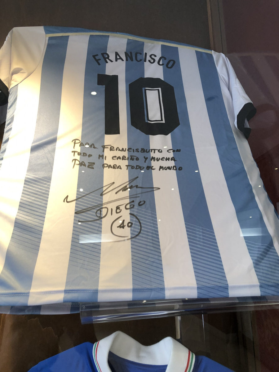 Those include signed photos and balls from a 2013 Italy v Argentina friendly where the Pope famously reminded the teams that “even though you are celebrities you are still men, in sport and in life”.