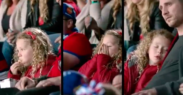 Kids dragged to the footy by die-hard parents who then fall asleep are cute. “Let’s market that,” someone said.