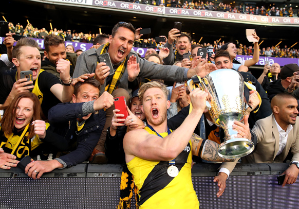 Broad took a photo of a young topless woman wearing his premiership medal only hours after the club’s drought-breaking Grand Final victory over the Adelaide Crows last month.